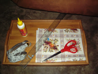 Compre unas bandejas, pero luego de algunos usos note que se comenzaron a ver muy feas por dentro, con marcas circulares, por los plato o vasos; y si se derramaba algo se iba a las en las orillas era  difícil de limpiar En una tienda de telas encontré este bonito mantel y se me ocurrió esta idea.